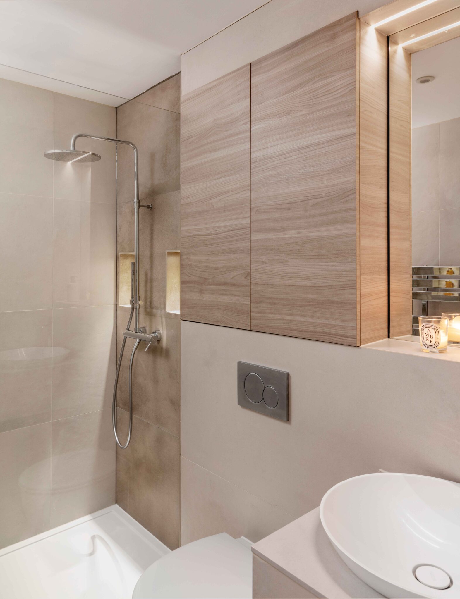 Azimut Melamine sink unit and Hono Elm melamine wall unit, Azimut Melamine Worktop, Scavolini Sink, Geberit Cistern, Catalano Wc